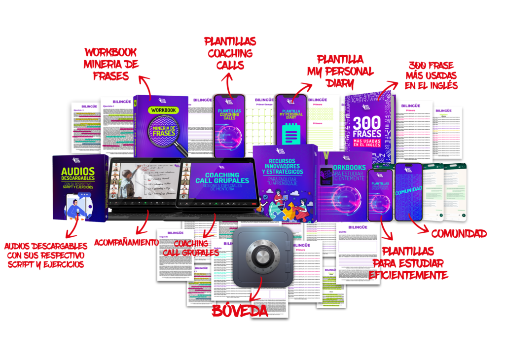 Una de las maneras mas eficientes de aprender Inglés es escribiendo, por eso tendrás acceso a nuestras «plantillas esenciales», podrás llevar un registro de tus estudios de manera escrita, tambien podrás desarrollar ejercicios con nuestros workbooks.
